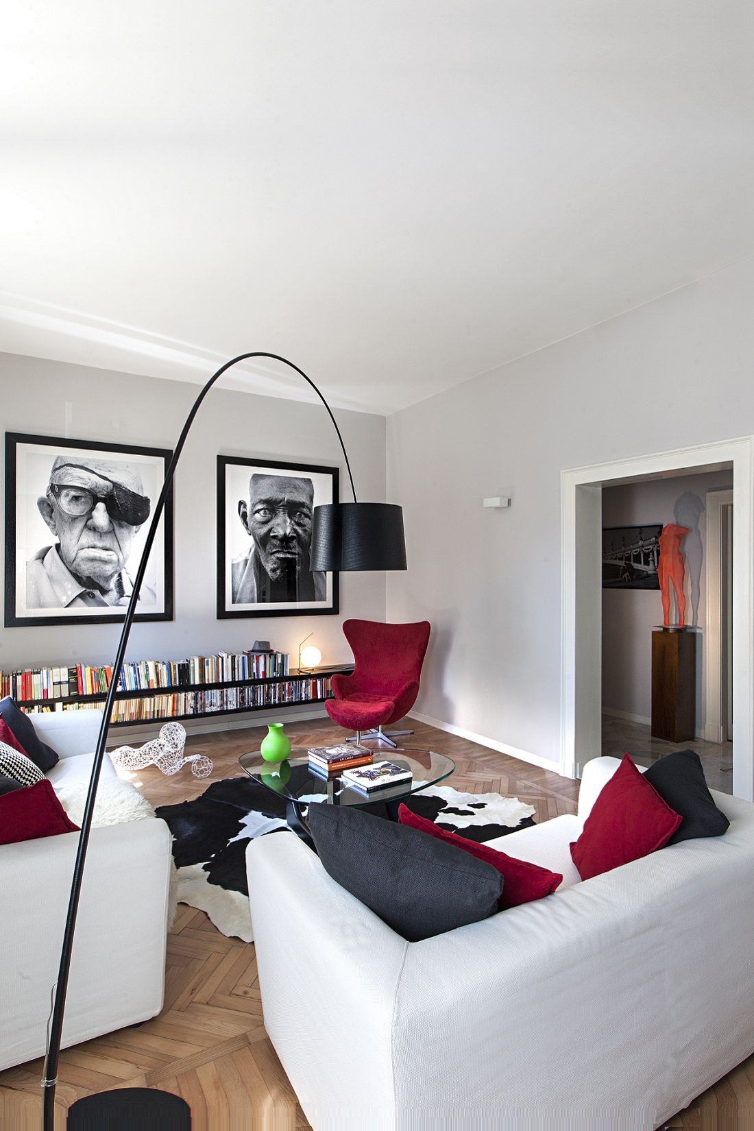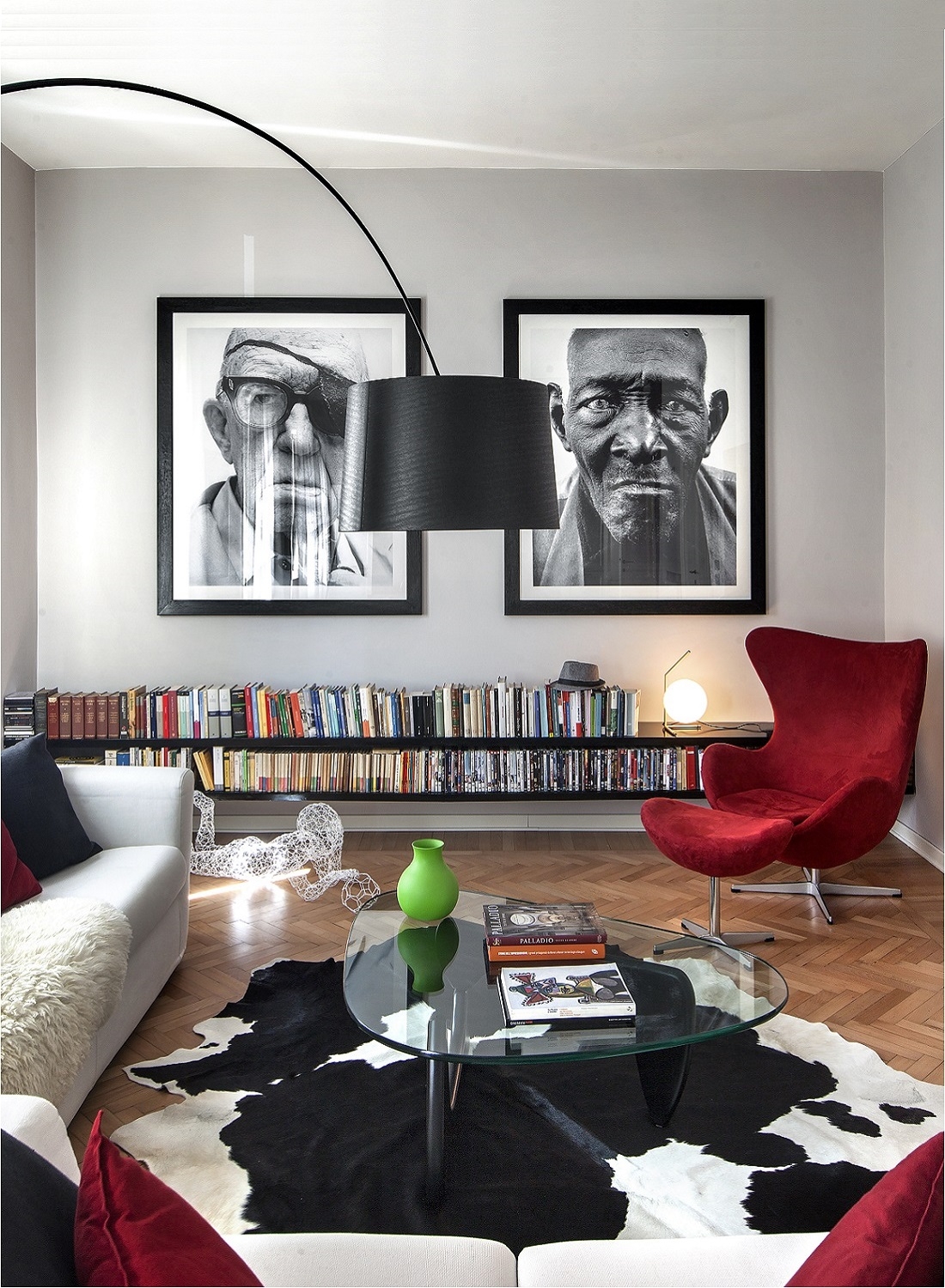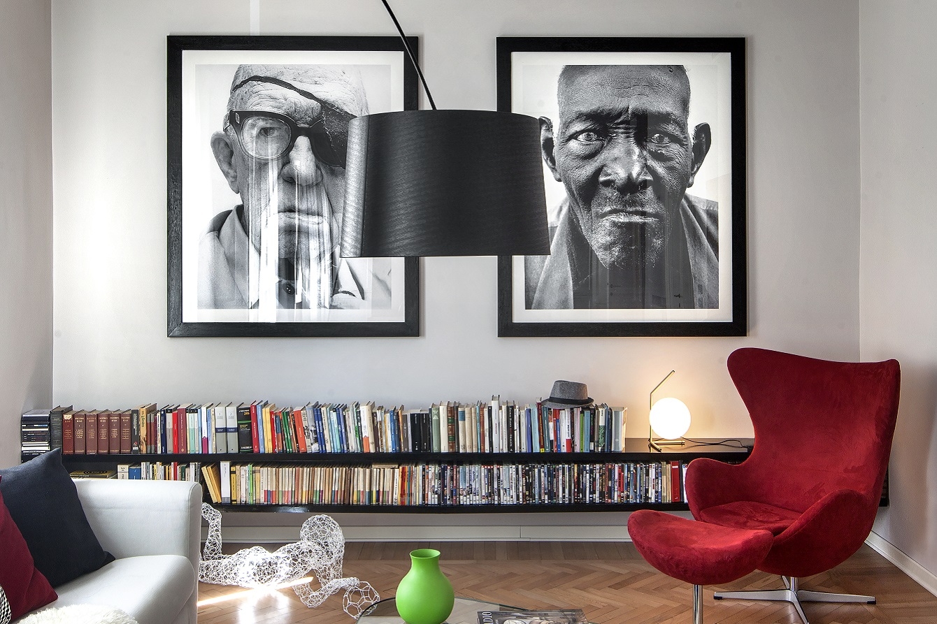 Nel living due ritratti fotografici di Richard Avedon; sulla destra Egg chair di Arne Jacobsen.