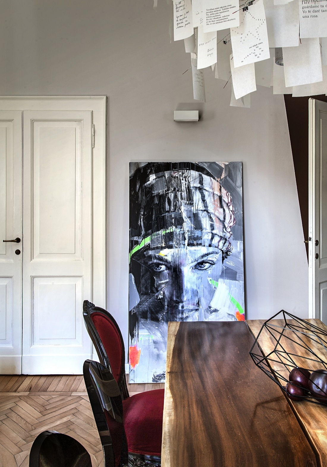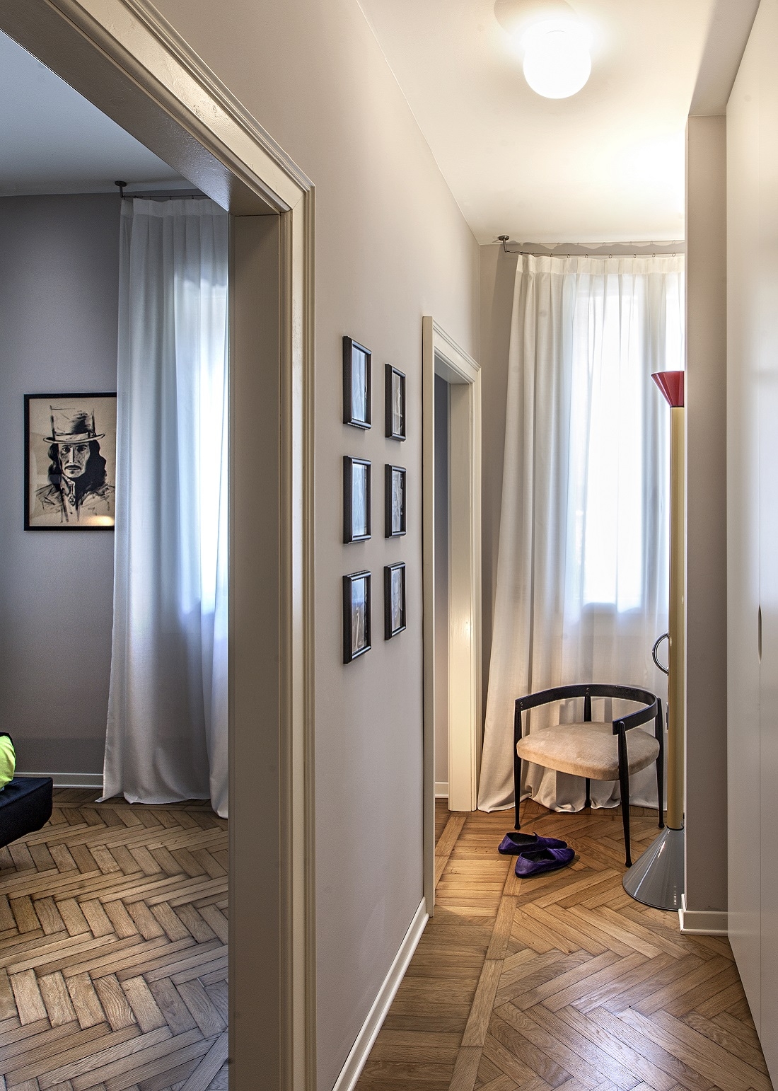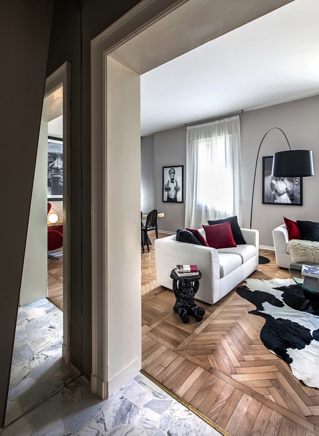Le pareti color tortora, i pavimenti a spina di pesce e le porte originarie, sapientemente recuperate, fanno da sfondo alle opere d'arte e alle grandi fotografie di volti di Richard Avedon.