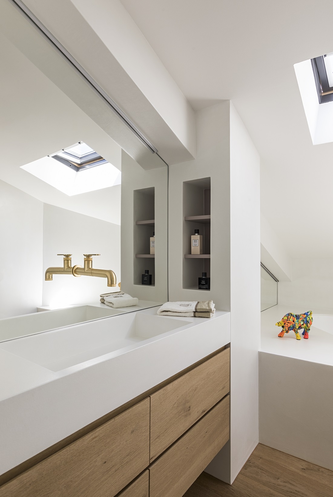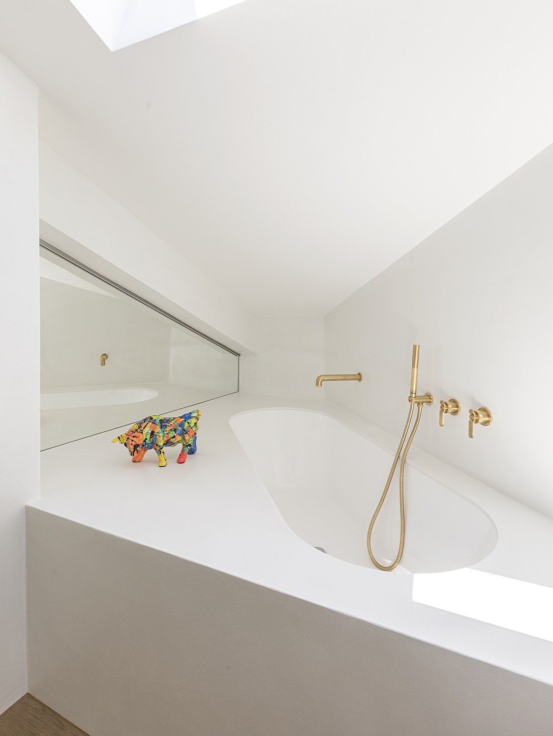 La vasca da bagno in resina bianca, rubinetteria Bold di IB.
