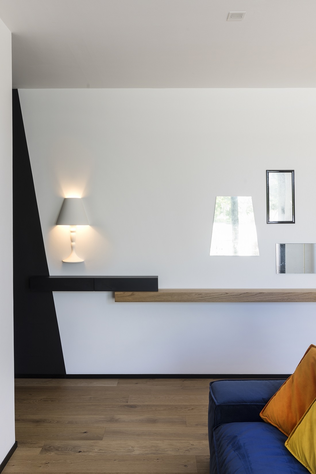 Nell’ingresso mensola su disegno a parete l’abajourd´Hui Small di Flos.