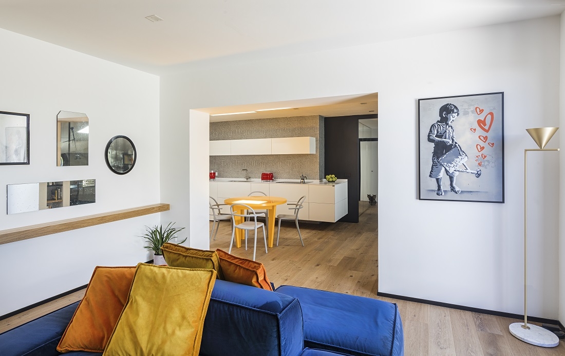 Frizzante e mai banale, l’appartamento risulta accattivante e avvolgente già all’ingresso, con uno spazio aperto che caratterizza l'area giorno dove ogni zona funzionale è ben individuata.