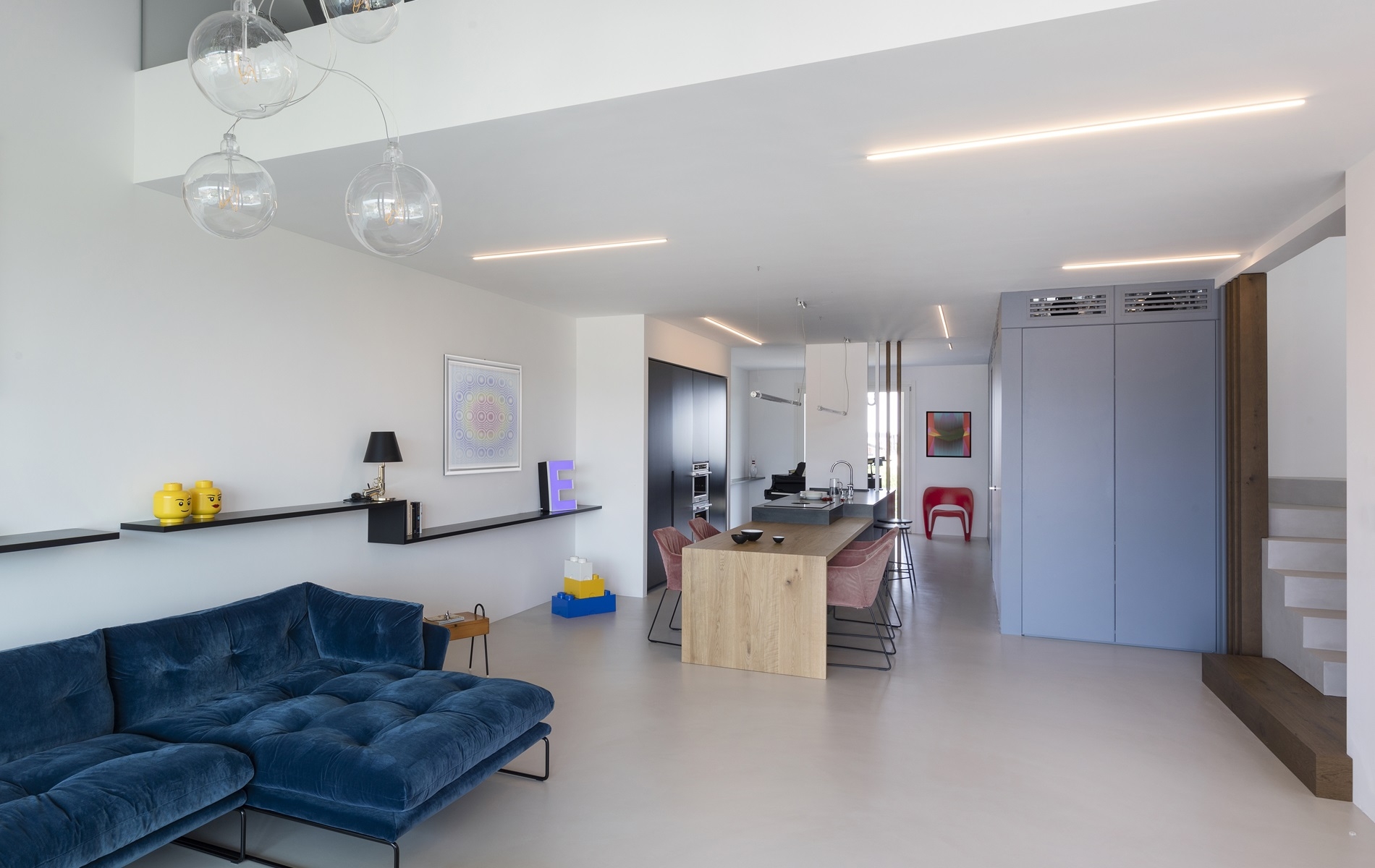 La distribuzione fluida degli spazi e la scelta accurata degli arredi trasformano l’appartamento in un luogo funzionale, accogliente e caratterizzato da un design personale, capace di raccontare la vita e le passioni di chi lo abita.