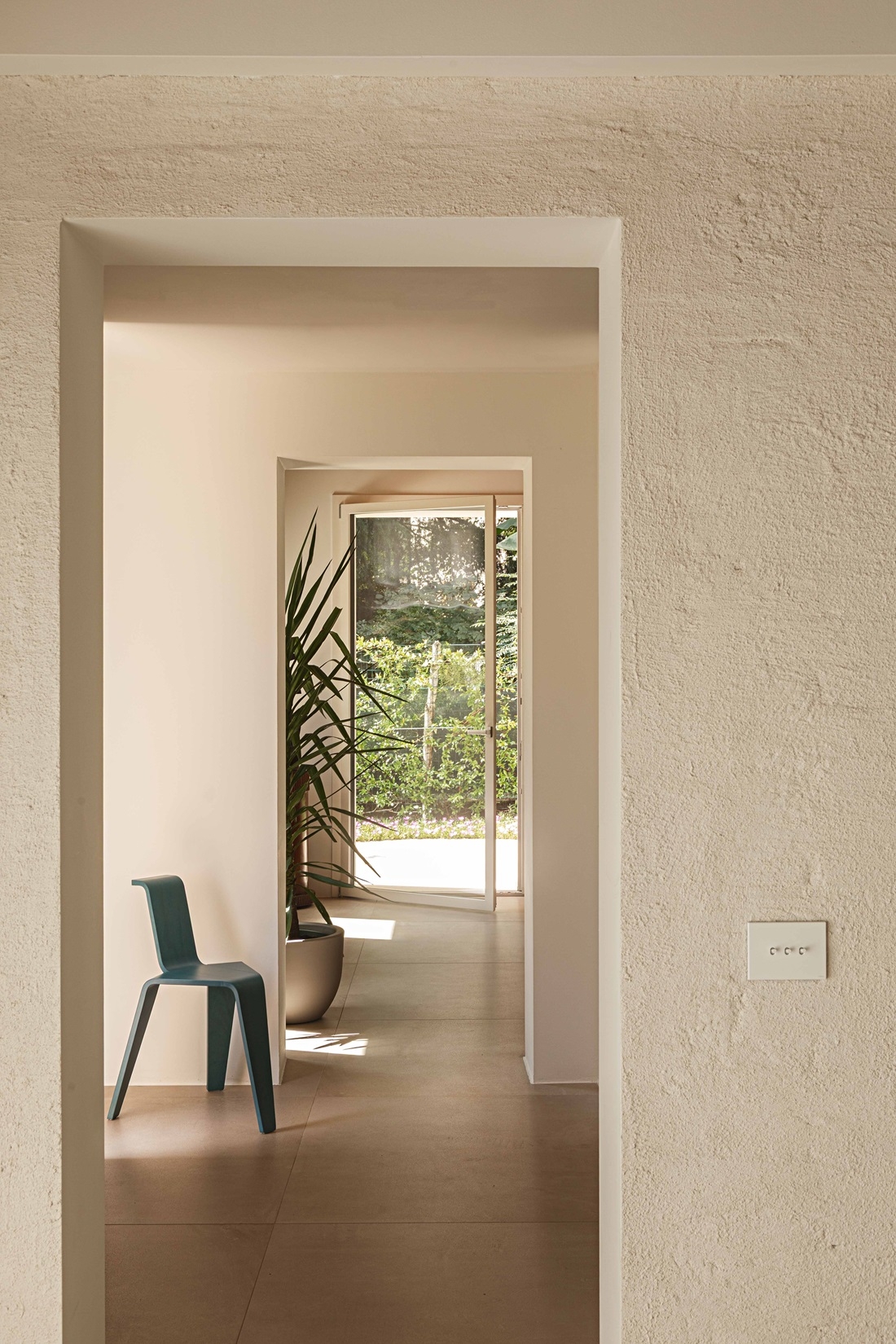 Scorcio dell’ingresso: sulla sinistra sgabello "Aka" di Magis.
