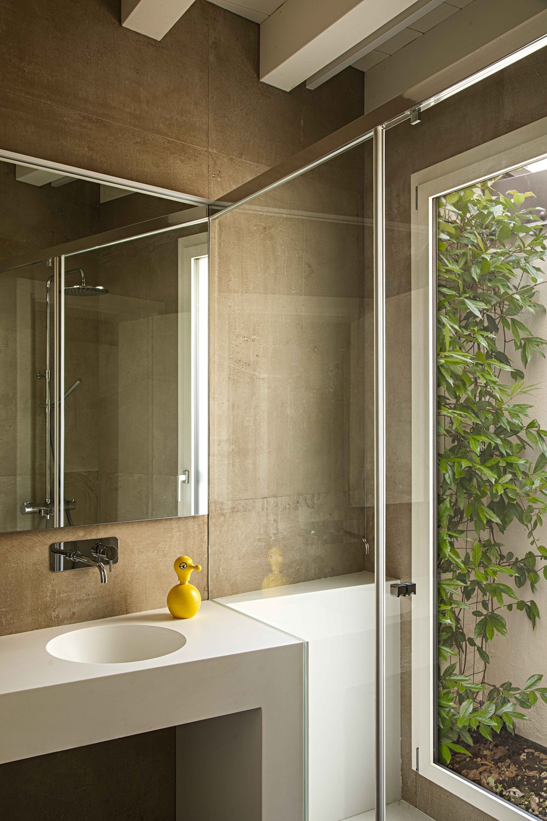 Il piccolo cavedio, presente sul retro della casa, consente di illuminare gli ambienti di servizio.