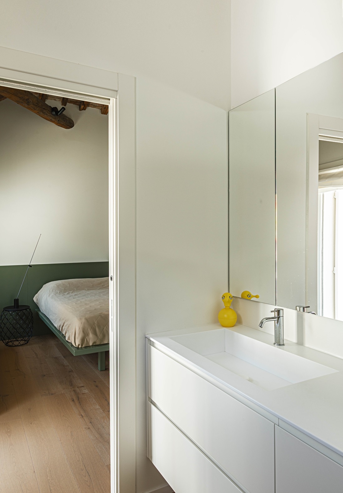 Scorcio della camera da letto vista dal bagno padronale.