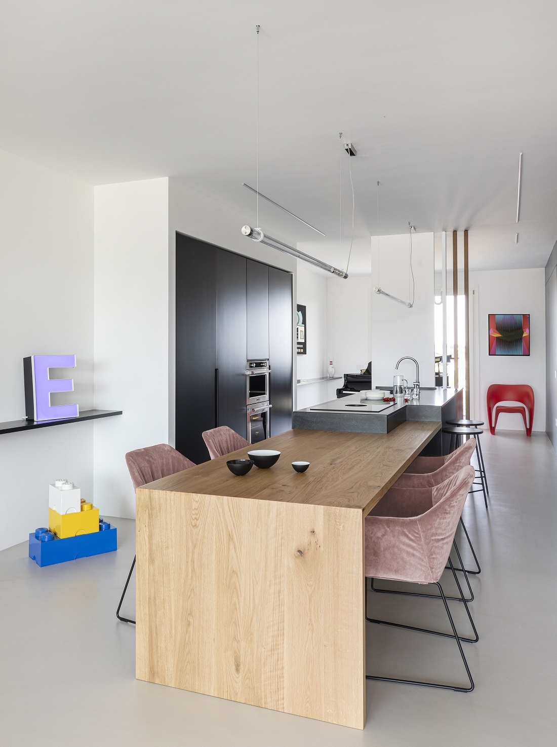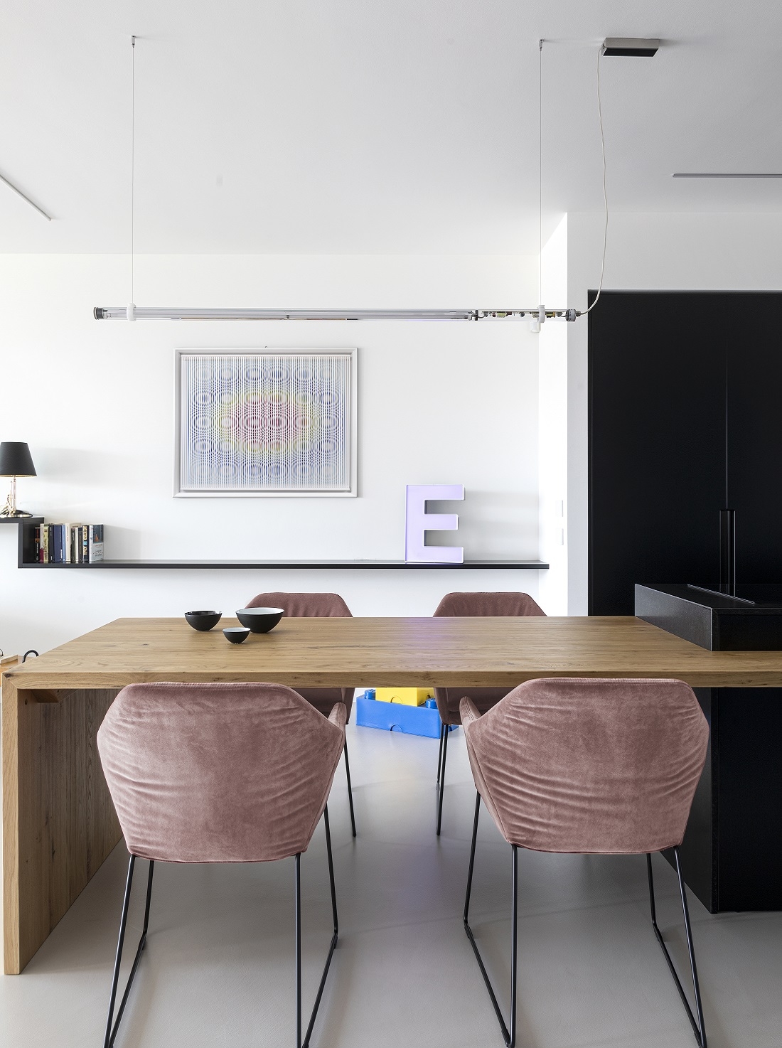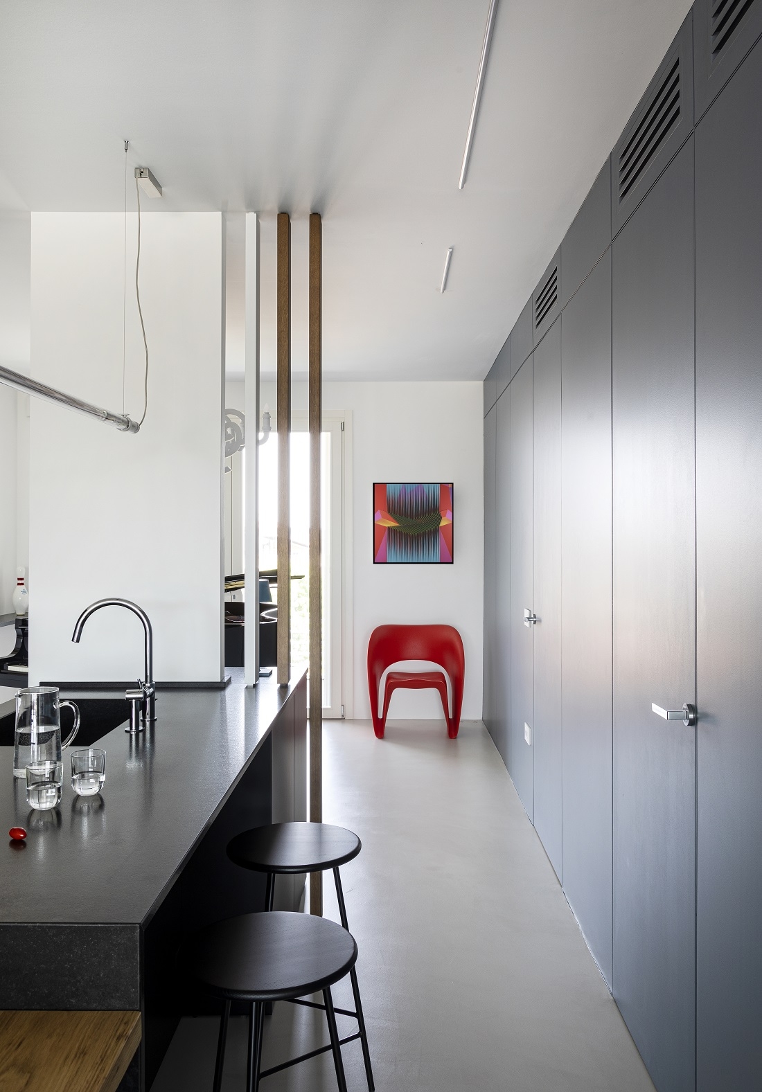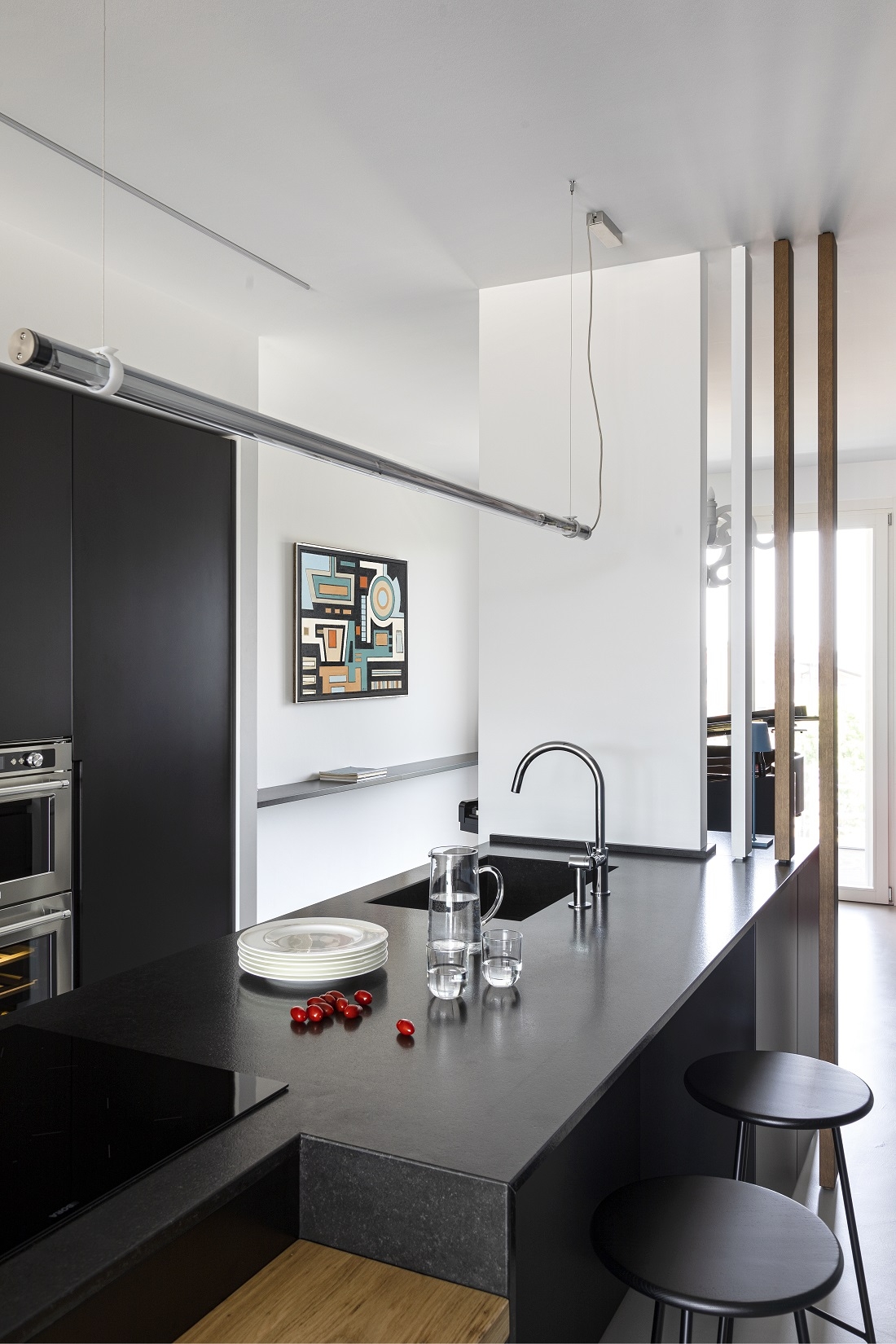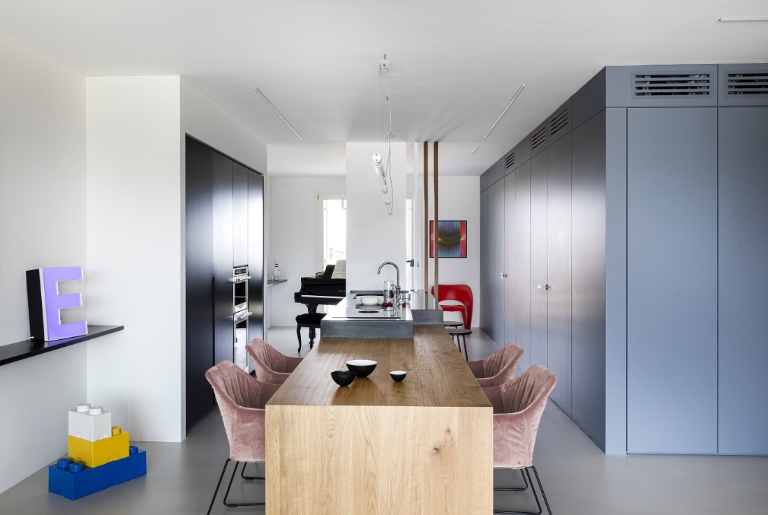 Un vortice di entusiasmi che, in questo loft a Padova, si è tradotto nella scelta di spazi puliti e lineari, scanditi da un moderno rigore minimalista assolutamente funzionale alla vitalità di oggetti e opere che mutano e si spostano in continuazione.