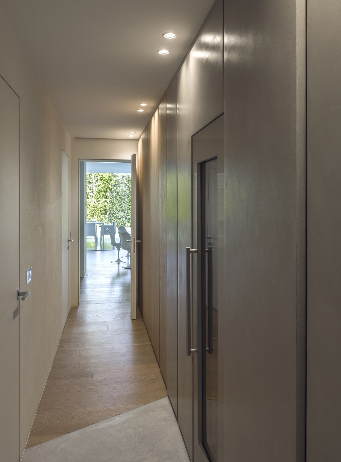 Nel corridoio armadio con le ante in resina realizzato su disegno.