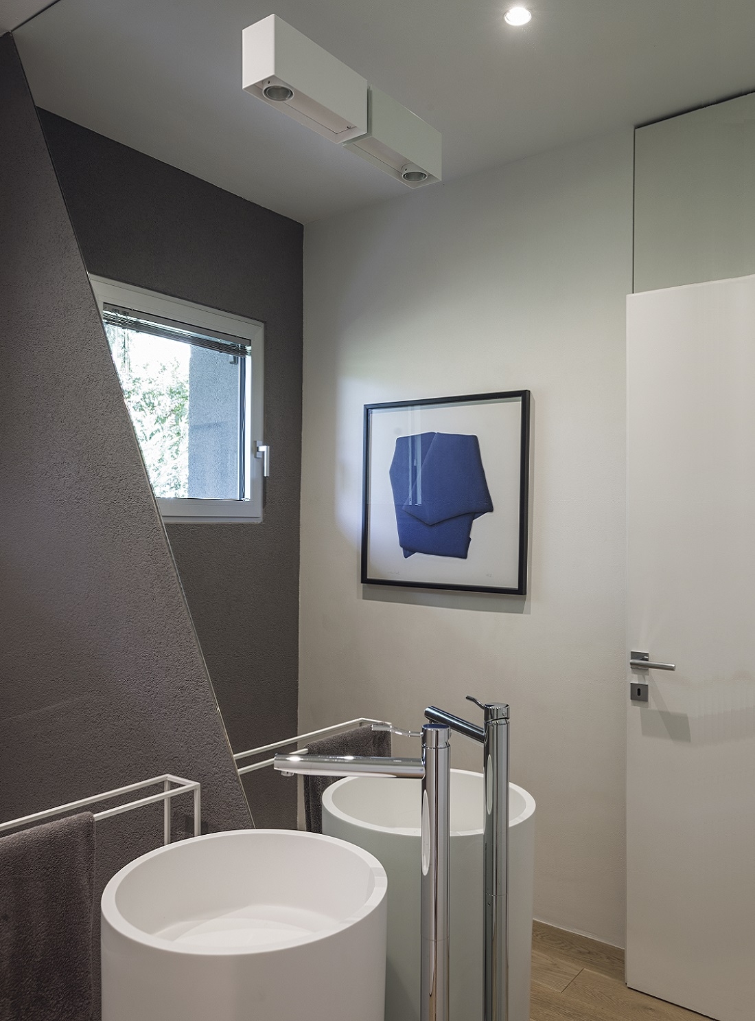 Nel bagno padronale mobile laccati realizzati su disegno.