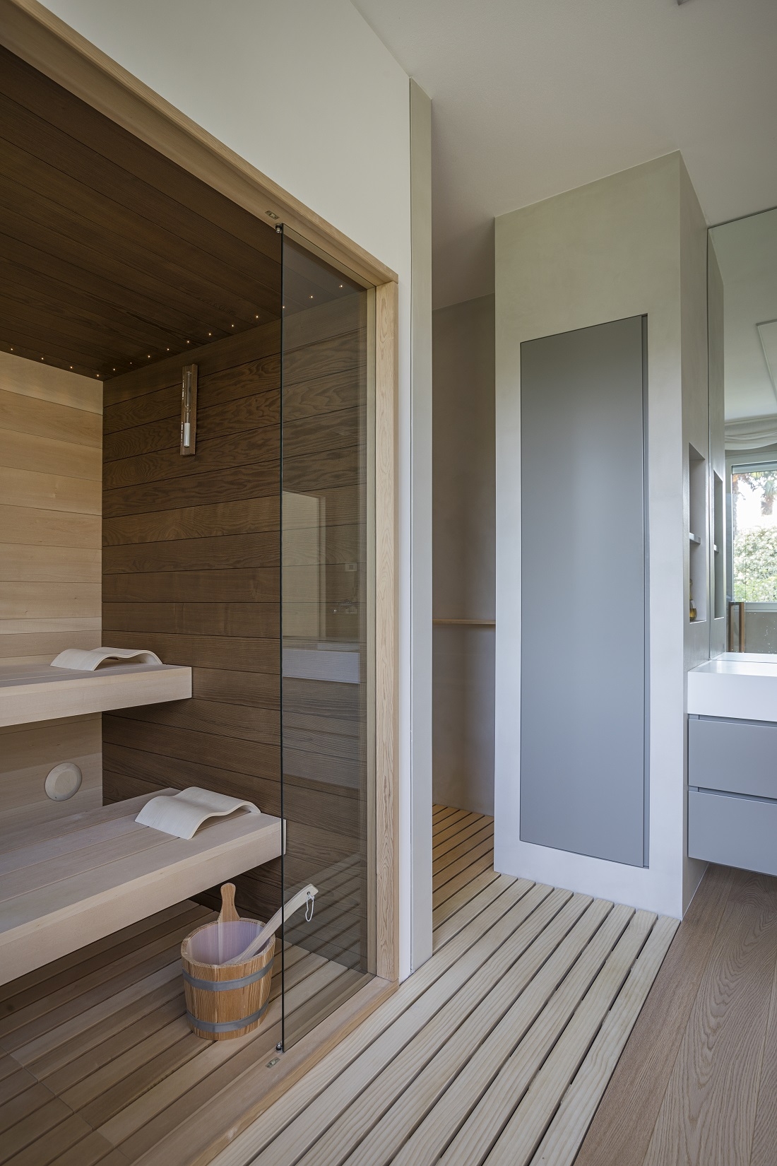 Il carabottino della doccia si estende fino alla sauna prodotta da Stenal.