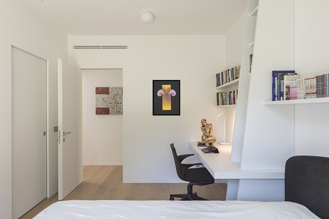 Nella camera della figlia scultura di Rabarama; a parete opera di Alberto Biasi.